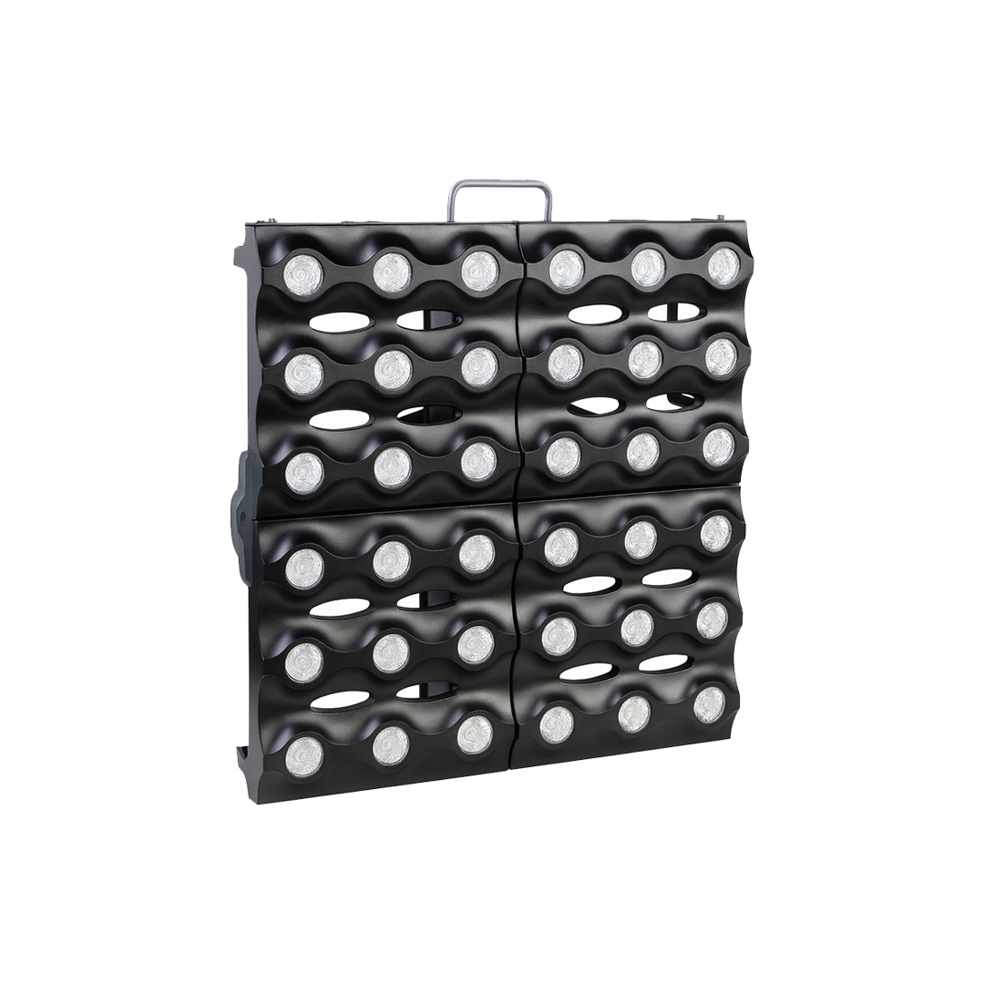 This fixture excels in modern stage design thanks to its pixel-mappable structure, allowing lighting designers to create custom effects, dynamic shapes, and flowing motion backgrounds. It can generate energetic strobe sequences, sweeping beam waves, and layered lighting compositions that enhance musical performances, festivals, club stages, and themed events. When linked together, multiple units can form large, immersive walls of light with seamless transitions and consistent performance.